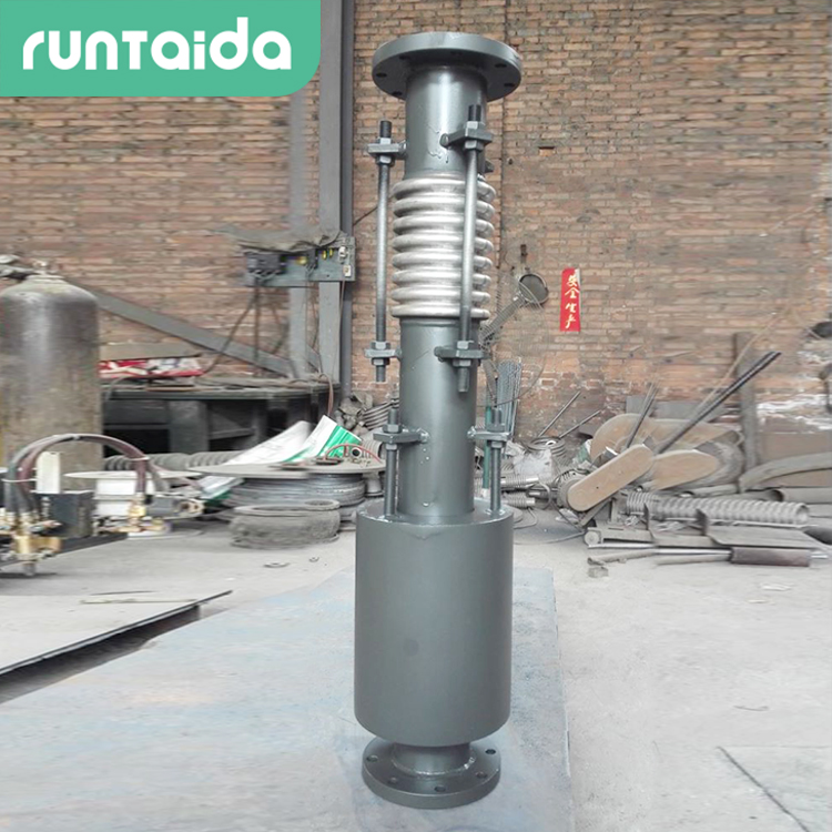 軸向復(fù)式波紋補(bǔ)償器由兩個或多個波紋管串聯(lián)在一起,在波紋管外有能夠保證波紋管在軸向移動時不致失穩(wěn)的外罩。這種膨脹節(jié)可吸收較大的軸向位移。對于這類波數(shù)較多的膨脹節(jié)而言,外罩即是一種保護(hù)裝置以保證膨脹節(jié)在運輸或安裝過程中不損壞波紋管。而且,又保證了膨脹節(jié)工作時的穩(wěn)定性,也是由于外罩的存在,對于膨脹節(jié)的保溫操作也變得簡單易行。